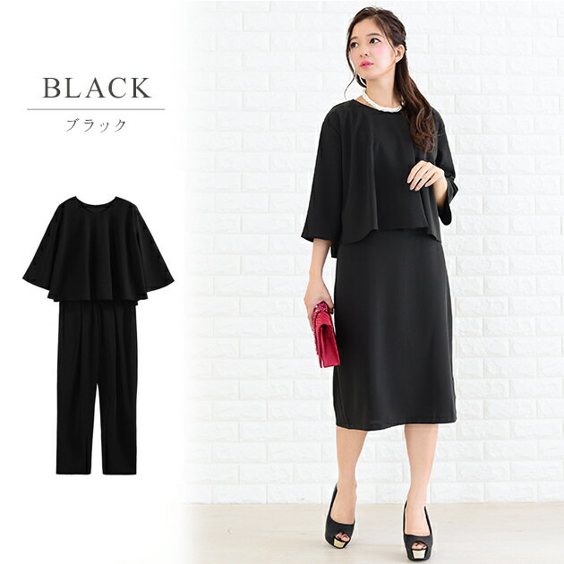 パーティードレス パンツドレス パンツスタイル セットアップ ワンピース ブラウス 5分袖 パンツ 3点セット レディース 大きいサイズ 結婚式 披露宴 黒 ブラック 紺 ネイビー ベージュ フォーマル 他と被らない 卒業式 ママ